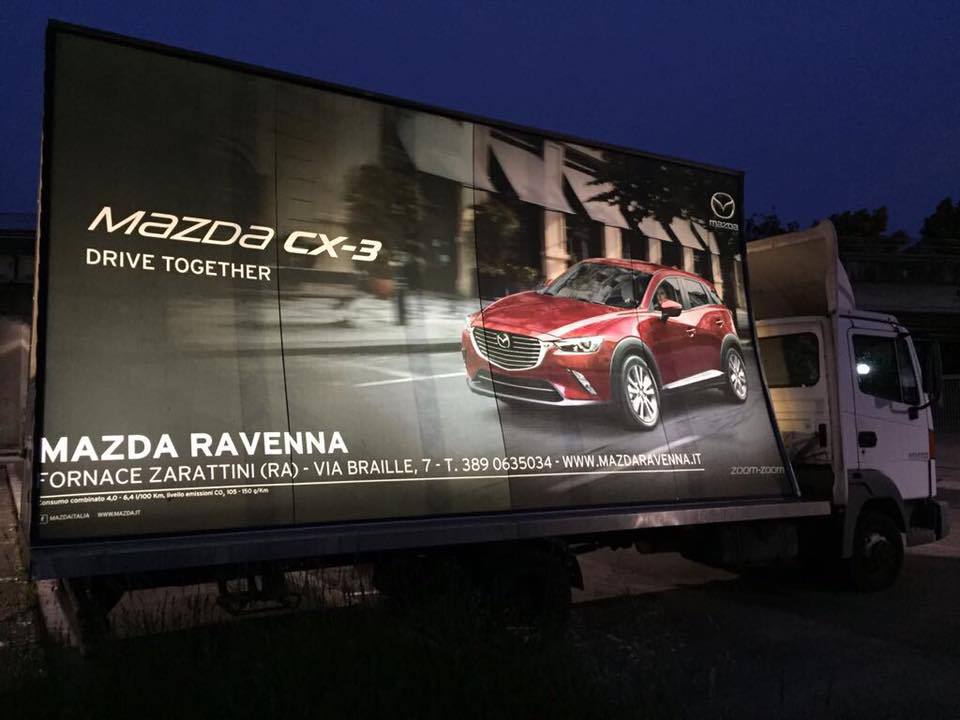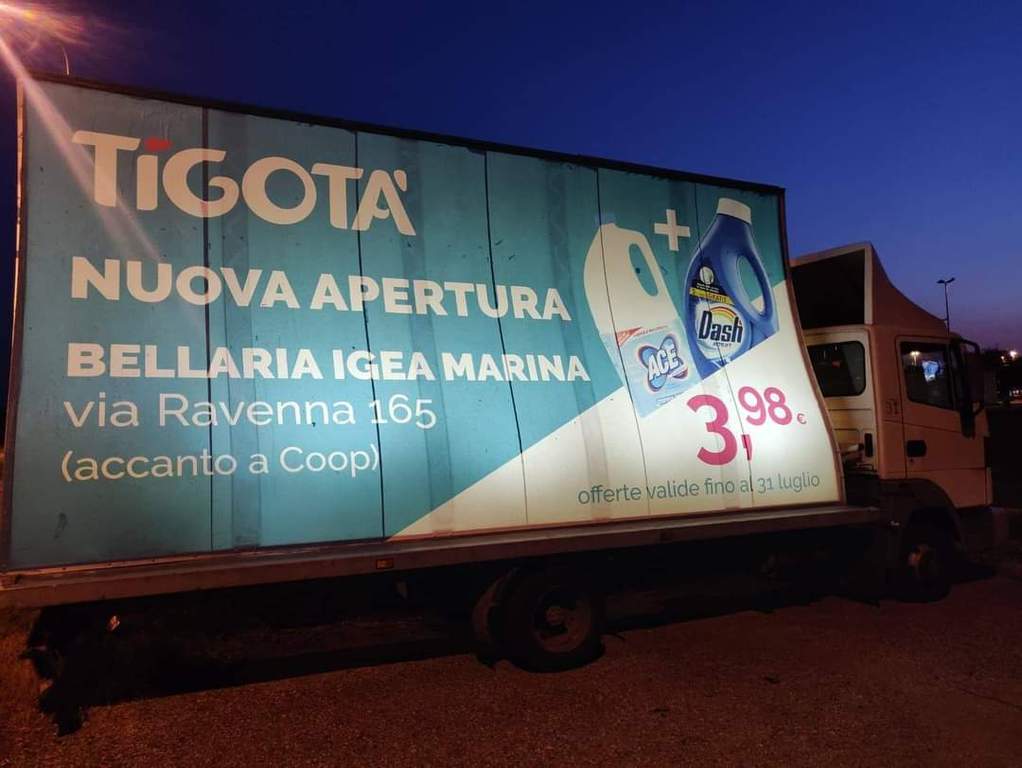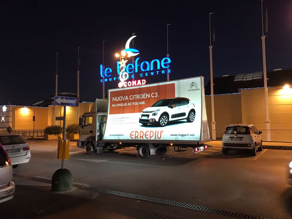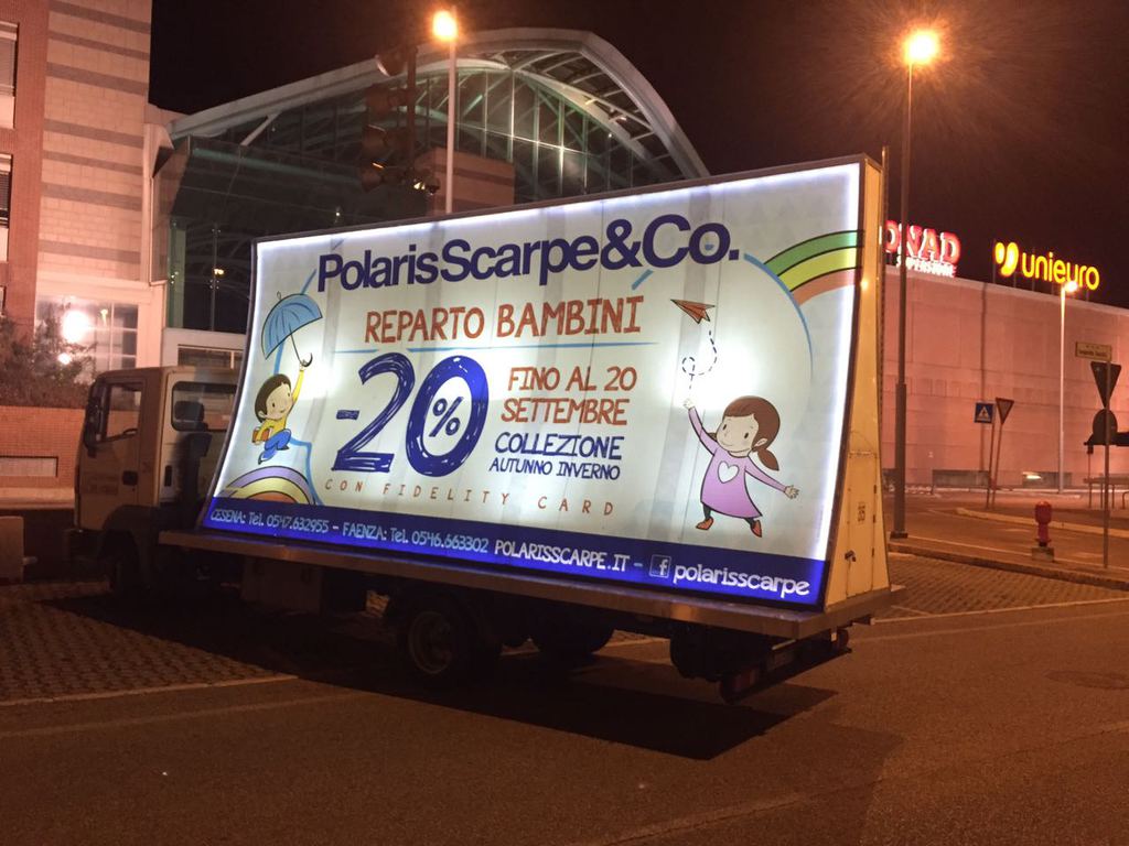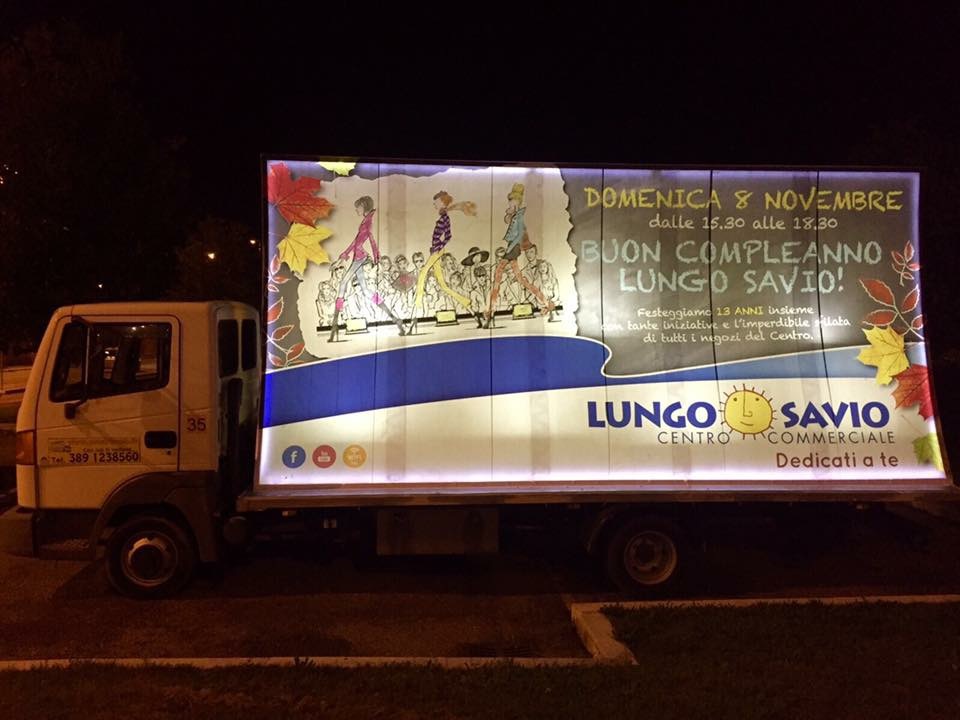 Le misure disponibili dei camion Vela illuminati sono cm 600x300 - 400x300 - 500x300